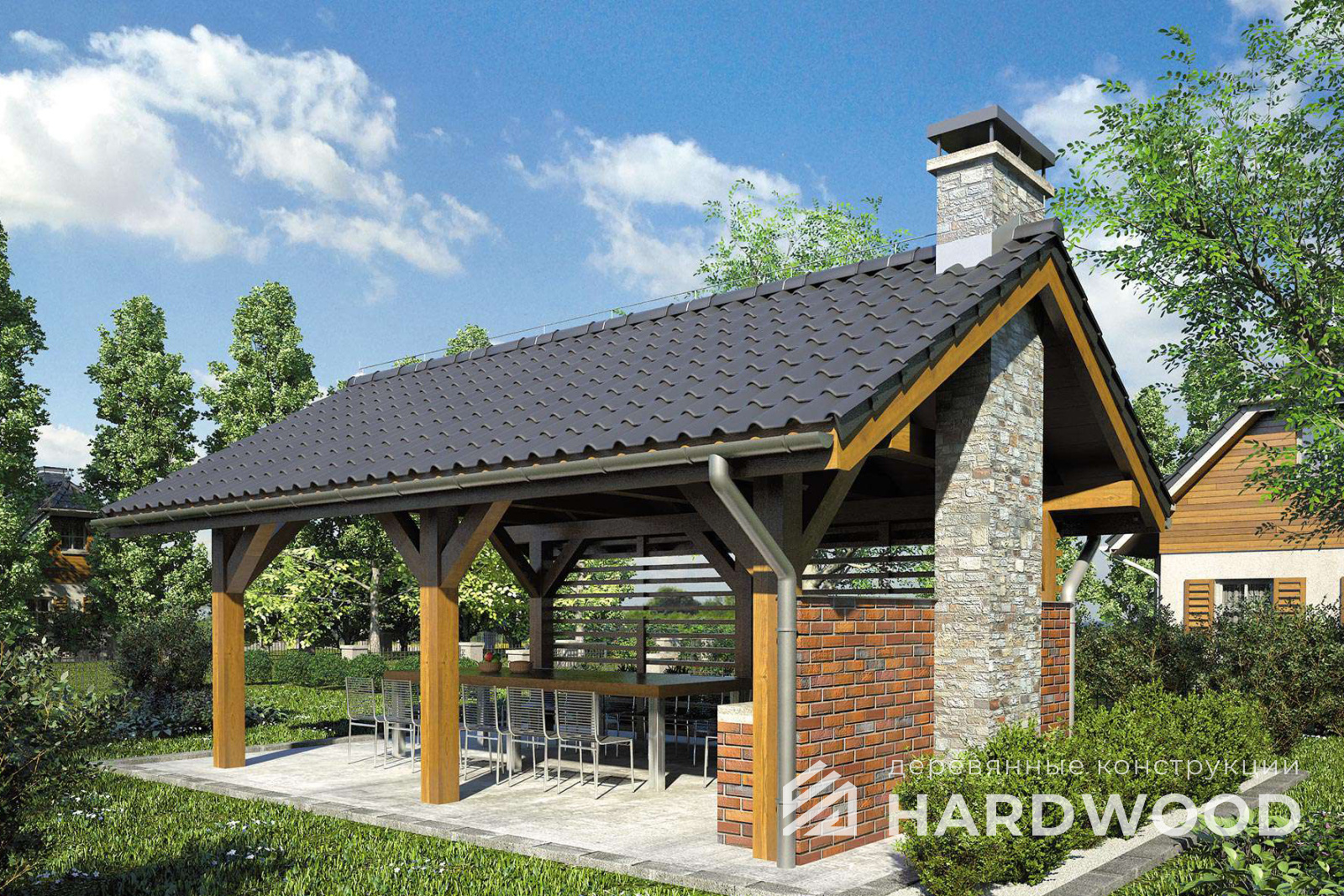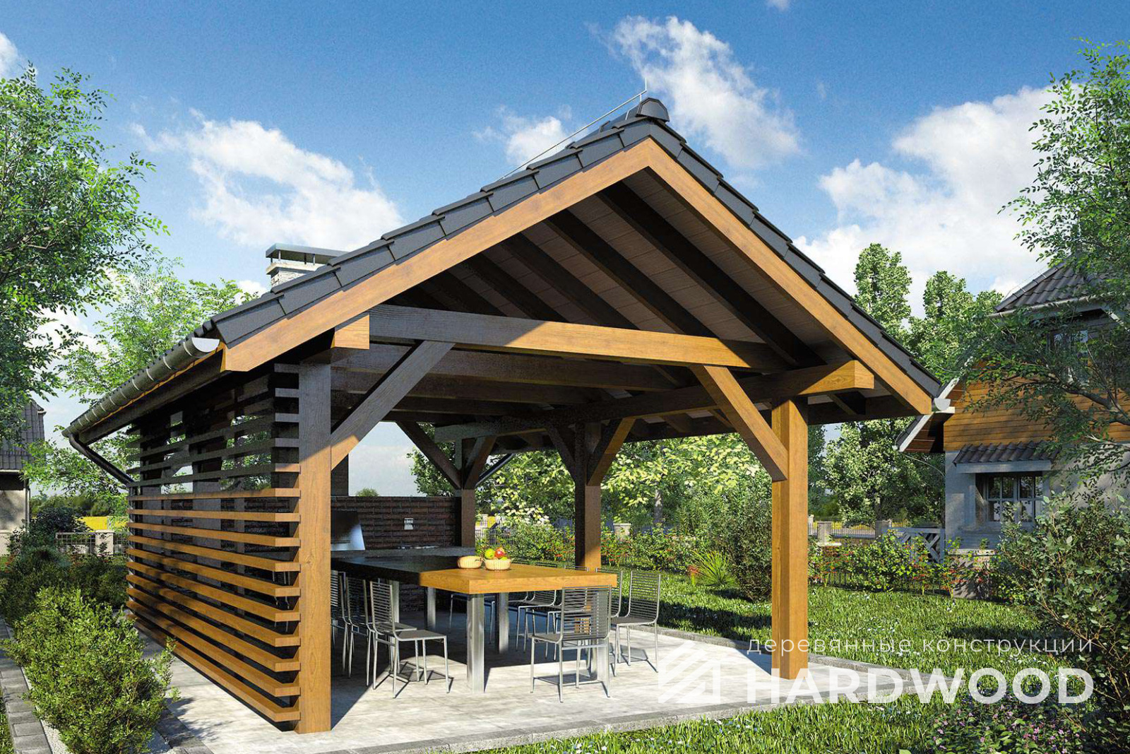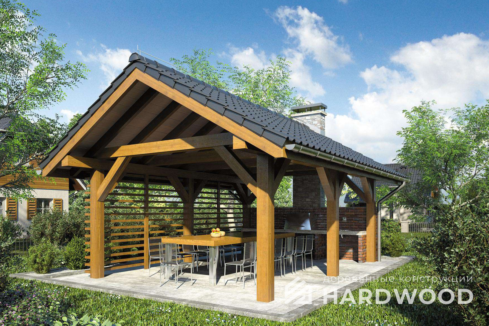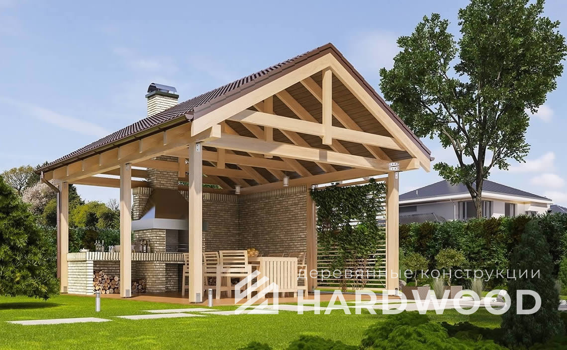 Деревянный навес для барбекю №90