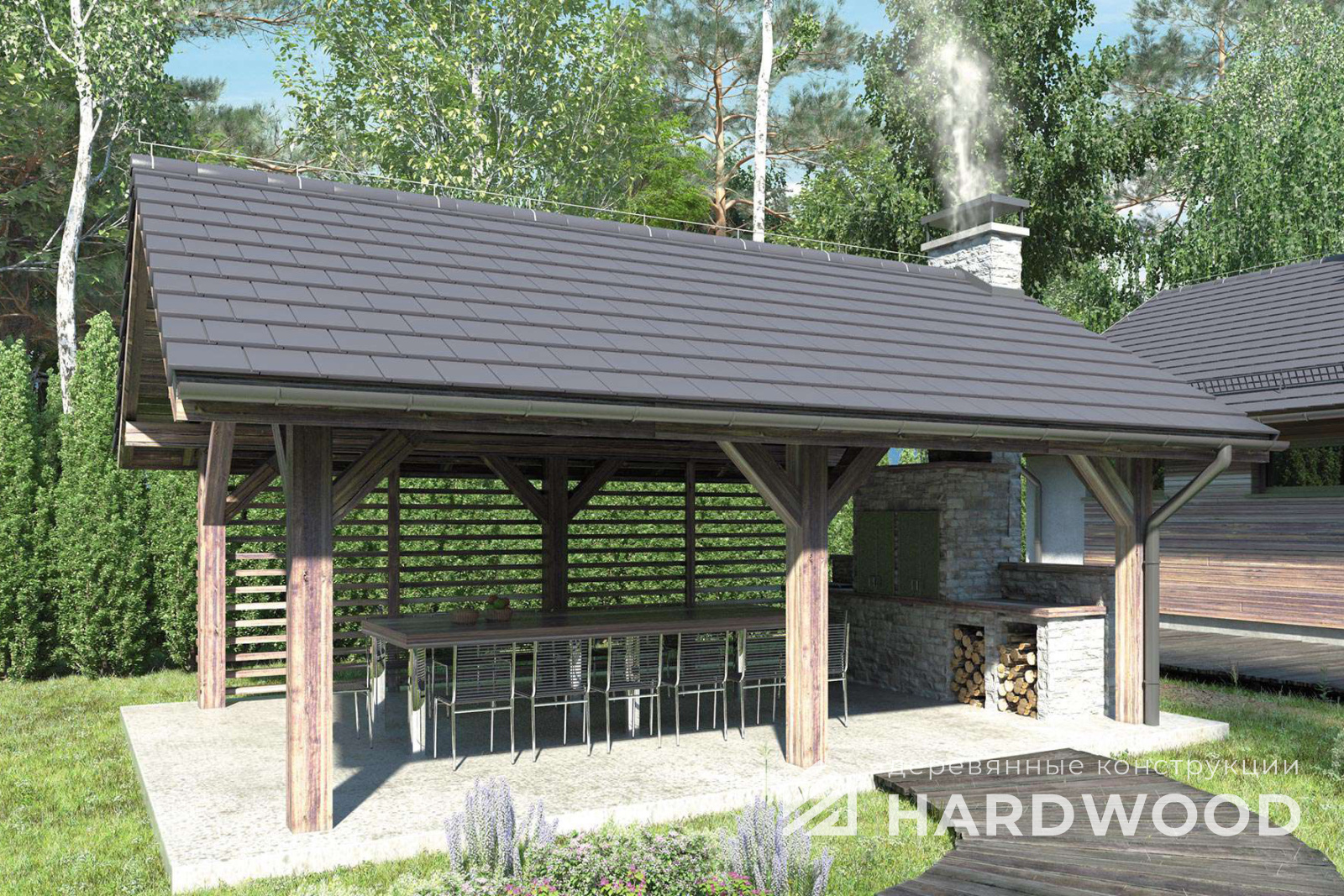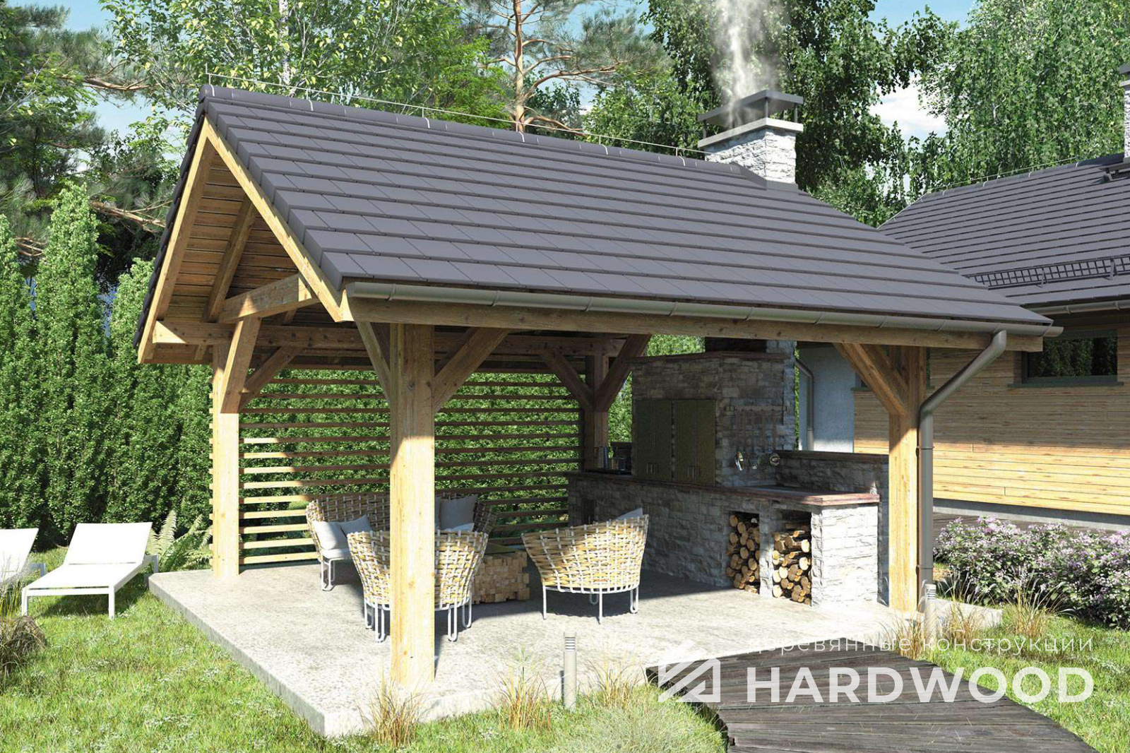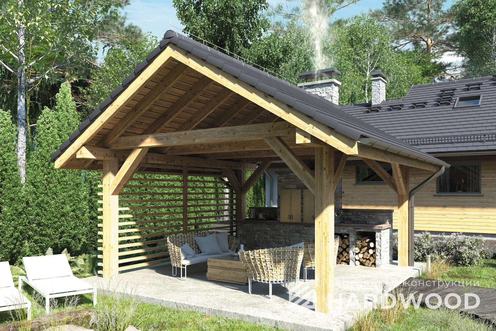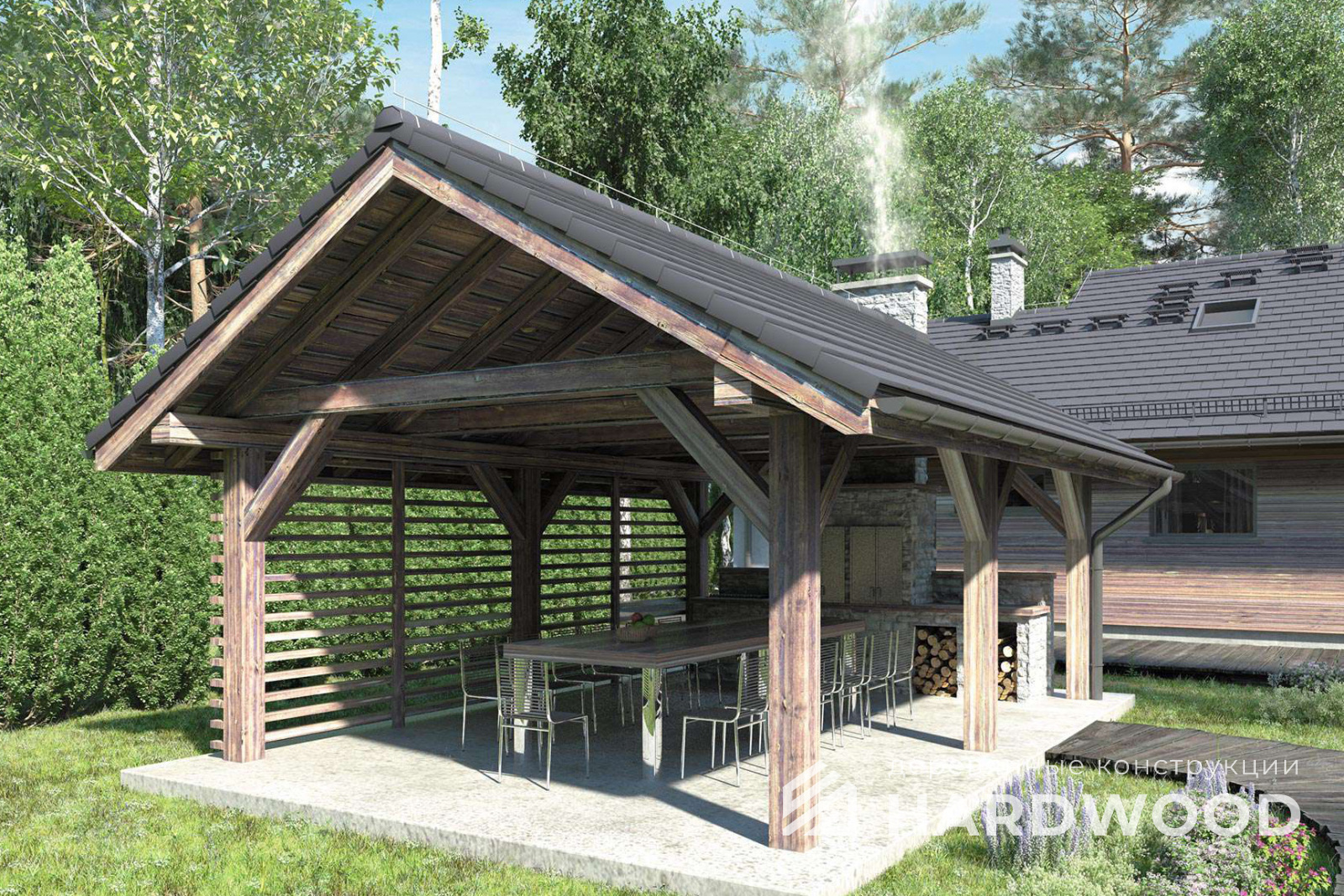 Деревянный навес для барбекю №90