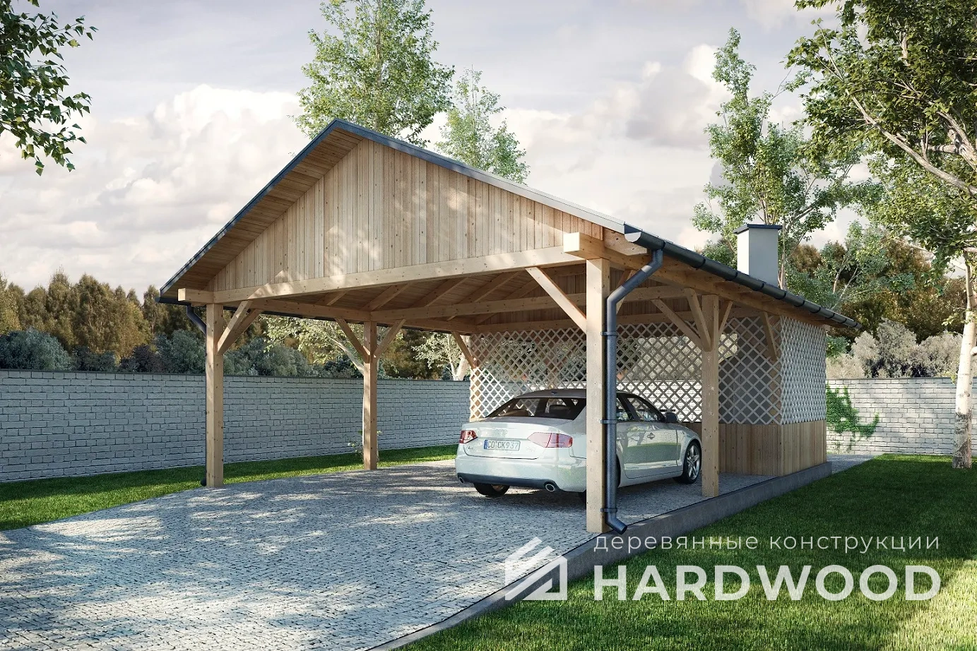 Деревянный авто-навес с зоной барбекю №115 - фото 880