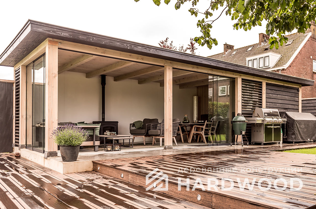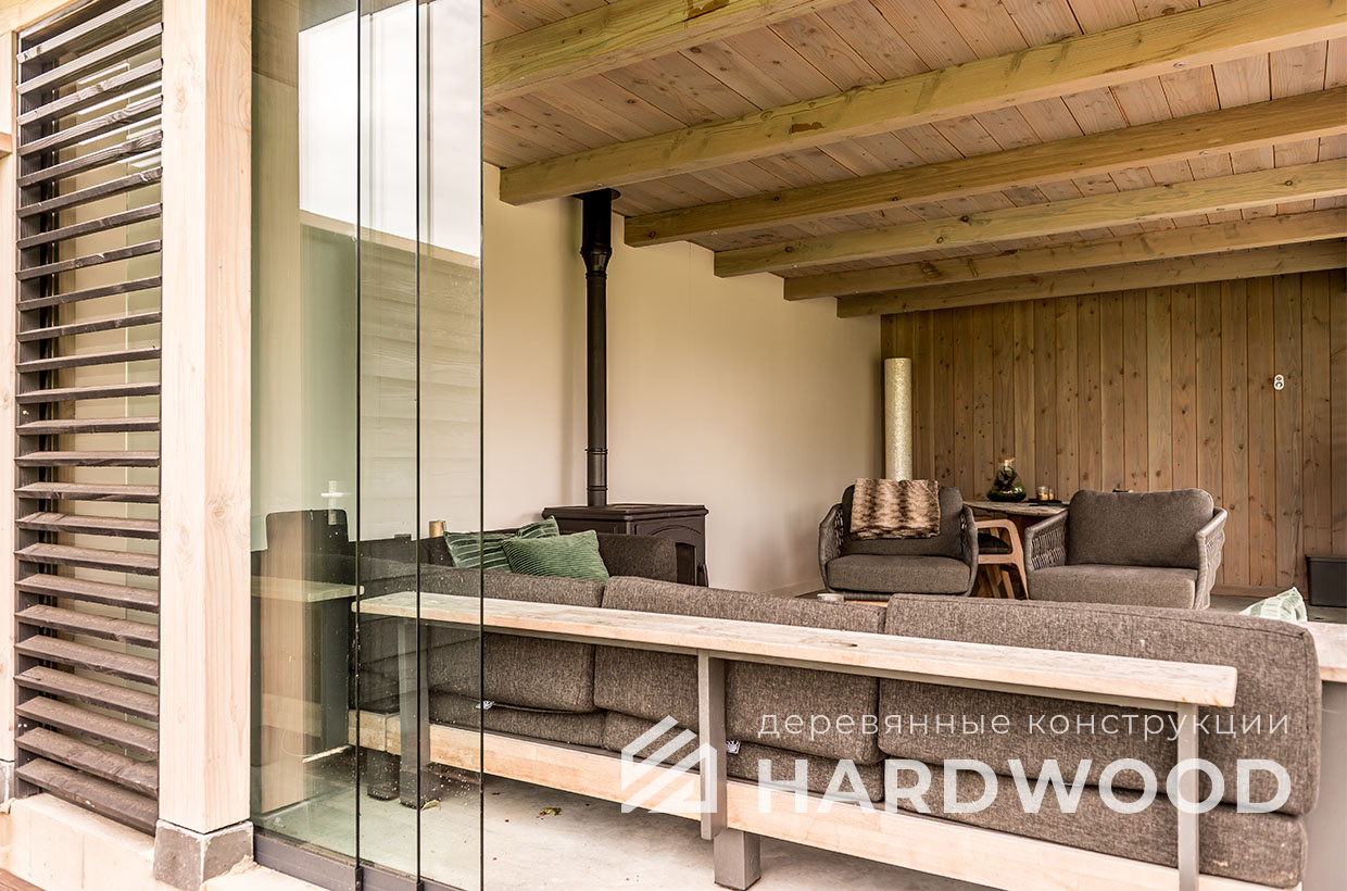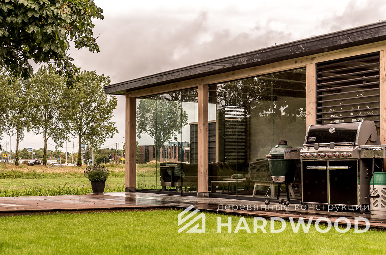 | Название модели: | Оригинальная беседка из обожженного дерева со стёклами №72 |