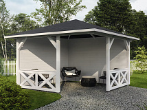 Все элементы постройки окрашиваются в 2 слоя с промежуточной и финишной шлифовкой. Стандартная краска Teknos Akrylin (цвет на выбор) по каталогу RAL Classic – более 1000 цветов. Масло, пропитка или другие производители красок – рассчитываются индивидуально